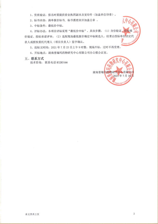研究機(jī)構(gòu):湖南普瑞瑪藥物研究中心有限公司 地址:湖南長沙市國家級瀏陽經(jīng)濟(jì)技術(shù)開發(fā)區(qū)康天路123號