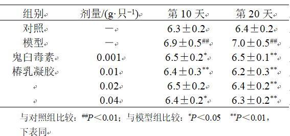 表3 椿乳凝膠對(duì)陰道pH值的影響 (, n = 8)