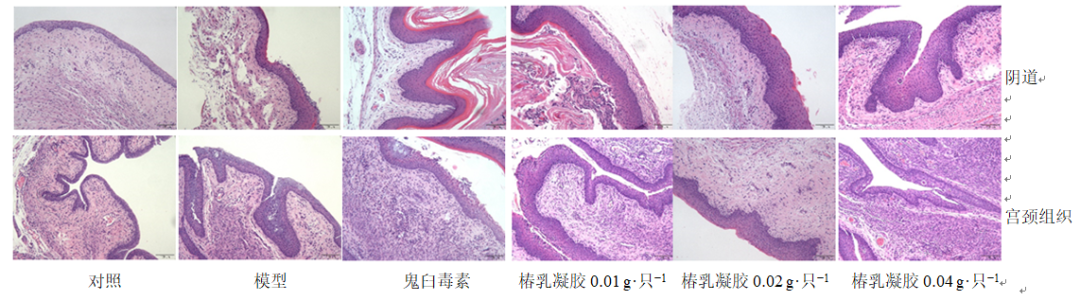 圖6 各組小鼠陰道、宮頸組織病理切片 (HE, ×100)