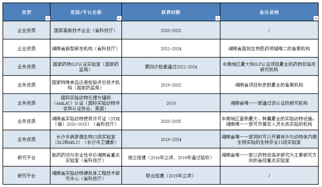 三、依托單位情況 依托單位湖南普瑞瑪藥物研究中心有限公司具有完善的研究資質(zhì)和科研平臺,有先進(jìn)的硬件設(shè)施和穩(wěn)定的研發(fā)投入,在中南地區(qū)動物實(shí)驗(yàn)疾病模型和藥物評價研究領(lǐng)域處于領(lǐng)先地位;公司占地68畝,建筑面積有3萬平米,有力支持和保障公司和團(tuán)隊未來的發(fā)展。目前企業(yè)現(xiàn)有的資質(zhì)、平臺如下: