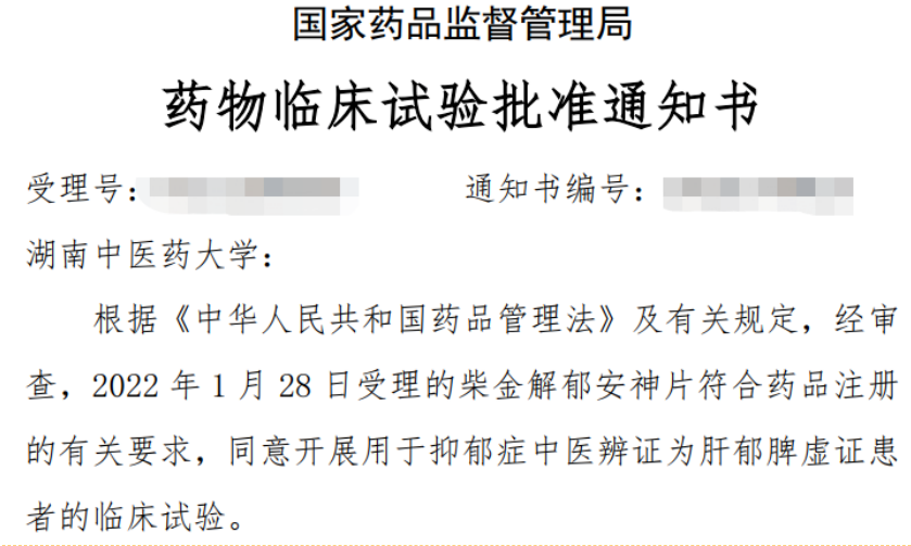 近期,湖南中醫(yī)藥大學(xué)王宇紅教授團(tuán)隊自主研發(fā)的柴金解郁安神片成功獲取國家藥監(jiān)局臨床試驗批準(zhǔn)通知書,這是近年來由湖南普瑞瑪藥物研究中心有限公司承擔(dān)非臨床藥理毒理研究的第3個獲批抗抑郁創(chuàng)新中藥。 湖南普瑞瑪藥物研究中心有限公司擁有新藥藥效與安全性評價湖南省重..