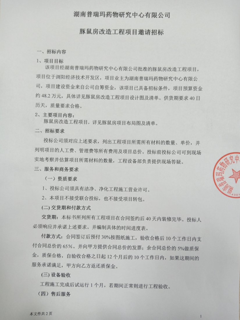 豚鼠房改造工程項目邀請招標(biāo)